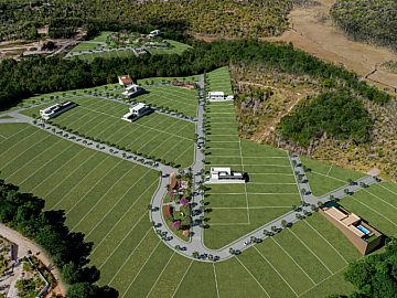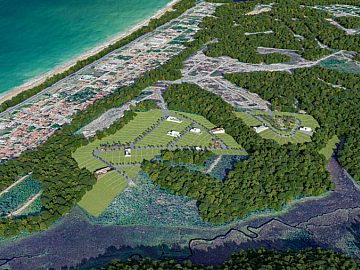 O empreendimento é composto por 161 lotes unifamiliares, com metragens a partir de 360m², incluindo opções intermediárias e lotes maiores que chegam a aproximadamente 1.150m². Há unidades com vista mar, localizadas na quadra A, enquanto a quadra B fica posicionada em frente, garantindo boa localização e valorização.